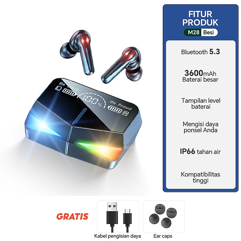 [Star]Headset Bluetooth Full Bass Stereo 3500mAh Power Bank Wireless Earphone Tahan Air TWS With Mic Headphones