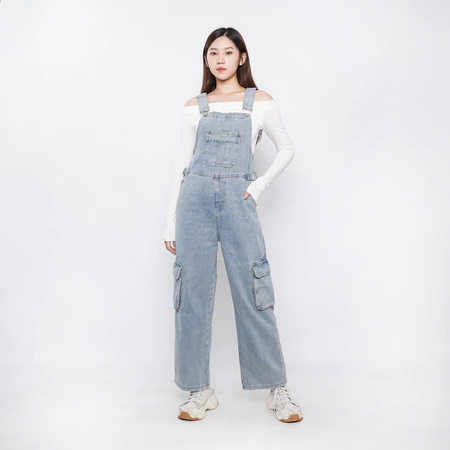 Jumpsuit Wanita Dewasa Kekinian Jeans Kargo Bahan Denim Premium Berkualtas Best Seller