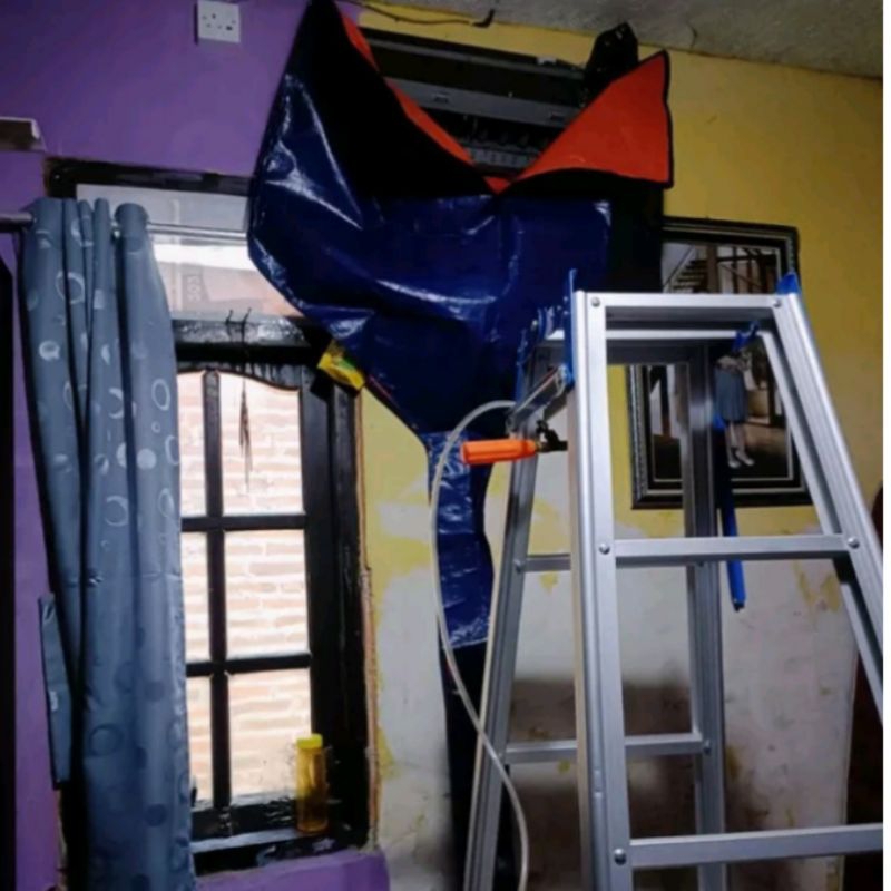 terpal talang AC, terpal cover, buat cuci AC, split 0,5pk sampai 2pk, pakai resleting