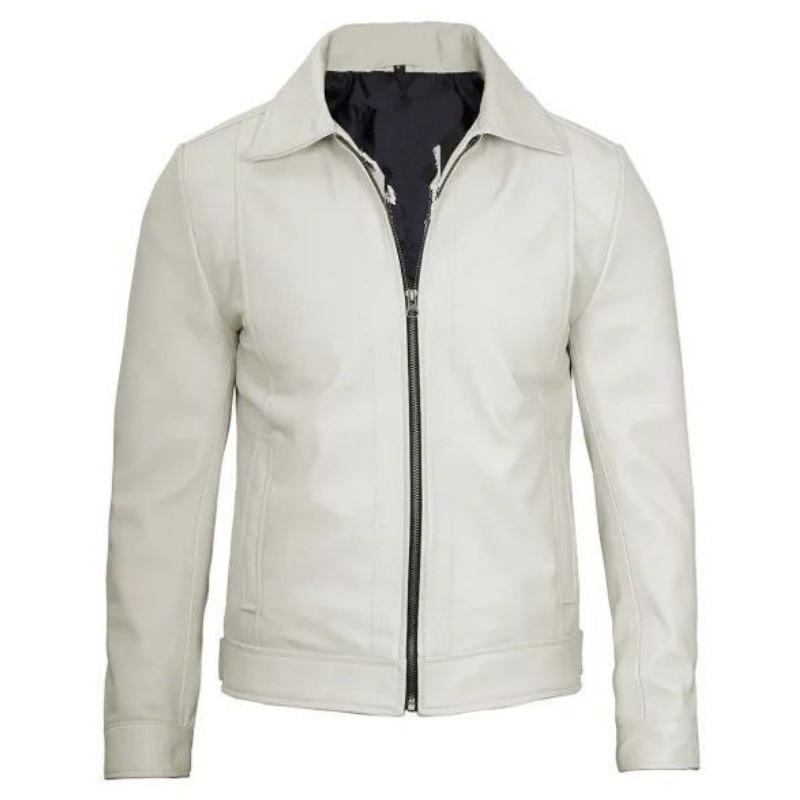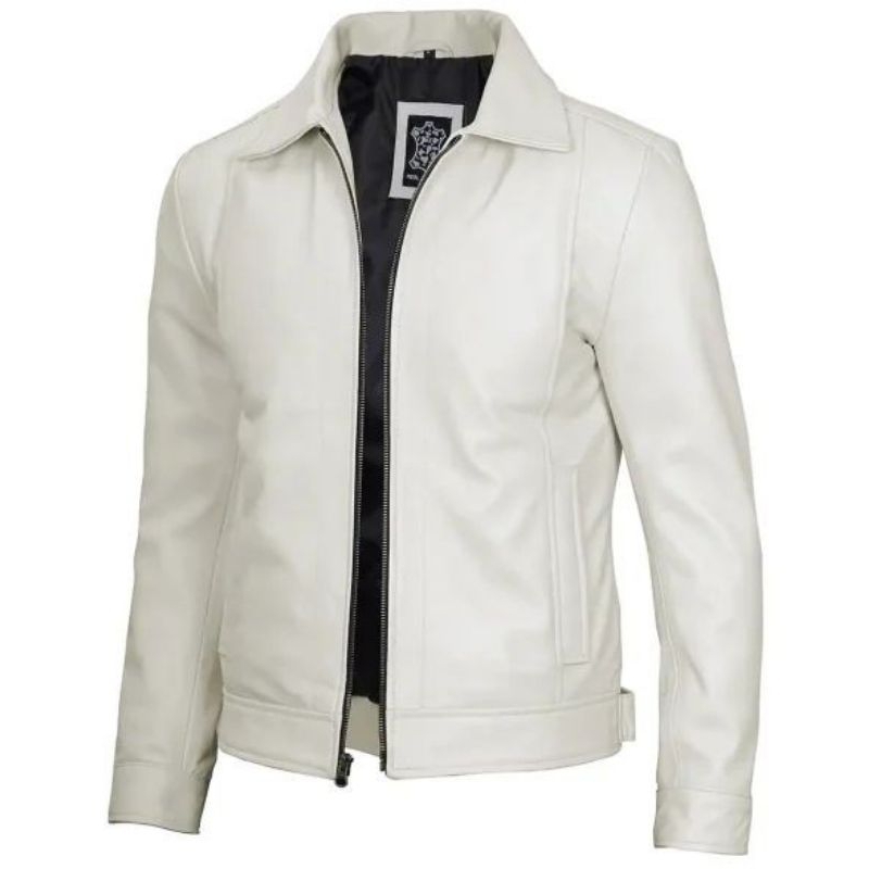 Jaket kulit pria original 100 persen asli domba warna putih tulang