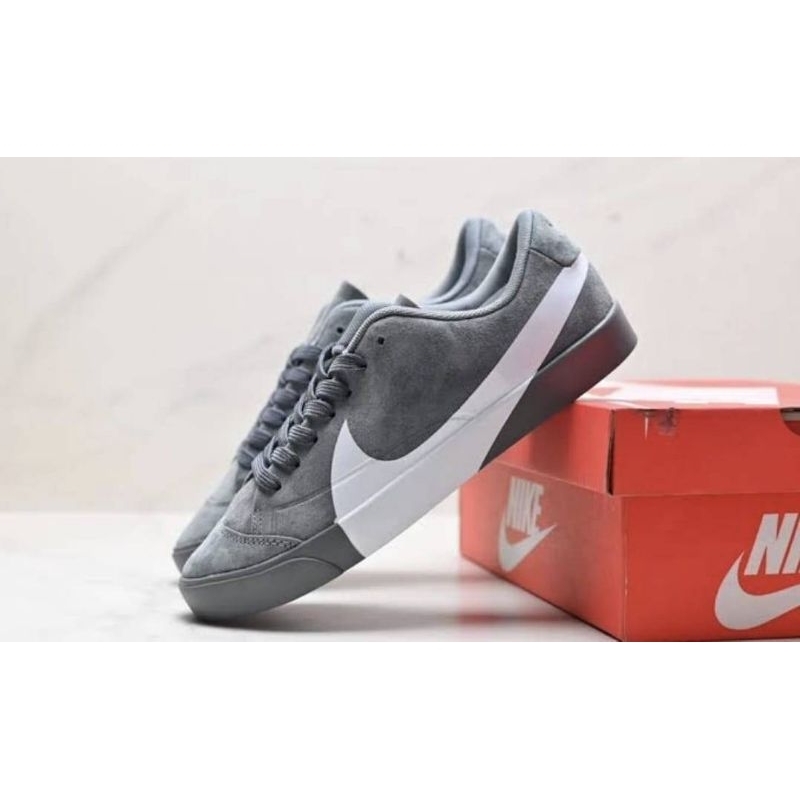 SEPATU NIKE BLAZER LOW OVERSIZED SWOOSH GREY BLACK WHITE UNISEX