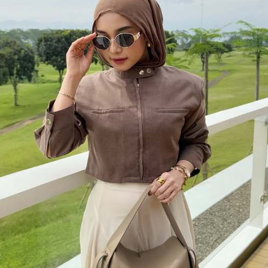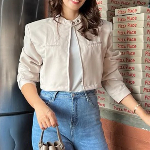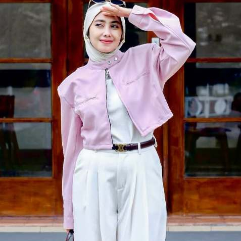 [PROMO MURAH] Jaket Crop Wanita Zipper Lengan Panjang Atasan Crop Wanita Bahan Semi Woll Premium