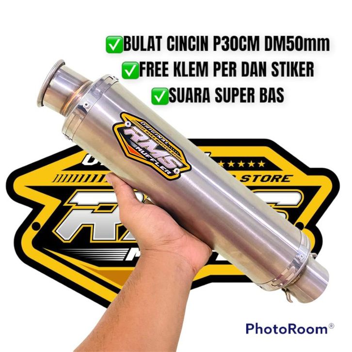 Knalpot RMS Muffler Original bulat cincin panjang 30cm dm50 bass ulem