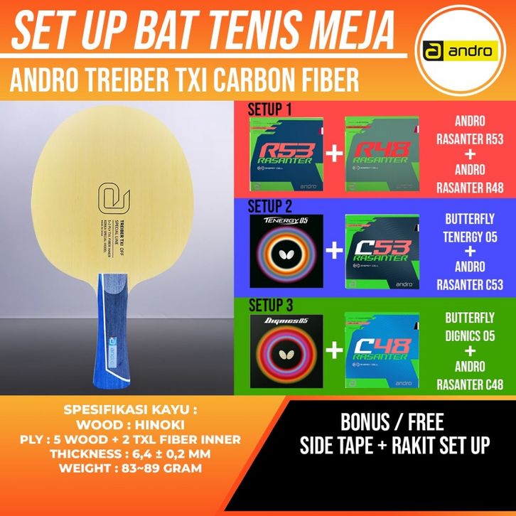 Paket Bat Pingpong Rakitan Andro Treiber TXI OFF Rasanter Butterfly