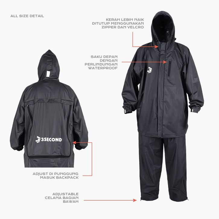3Second Jas Hujan Setelan Jaket Celana Pria Wanita Premium Raincoat Eden OL-C09012515