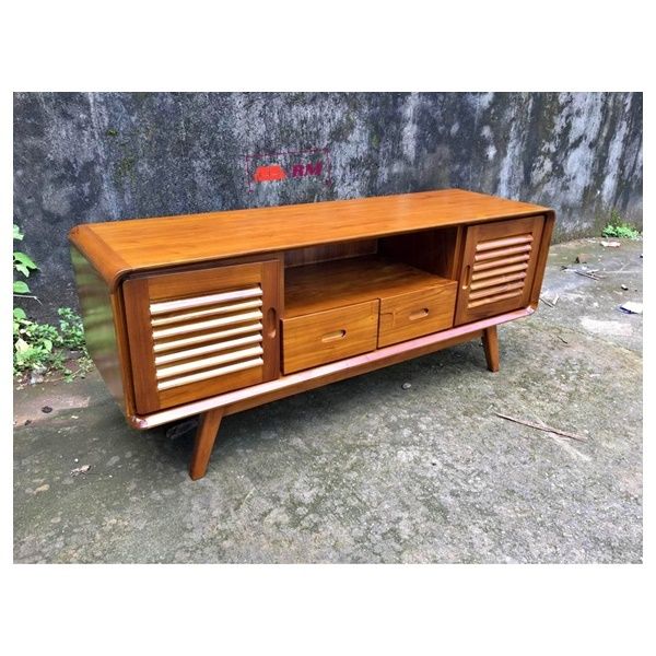 Bufet tv retro 2 pintu krepyak kayu jati ukuran 120cm
