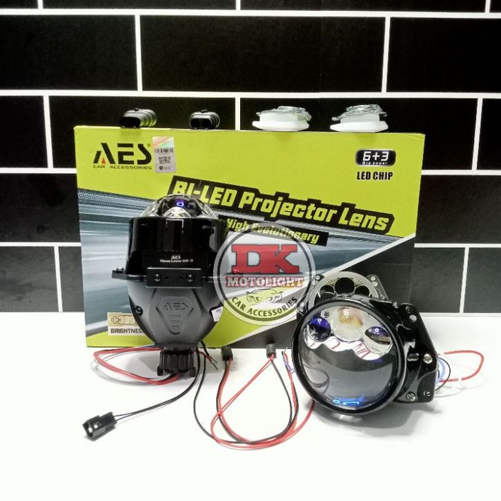 Lampu Headlamp Projector Biled AES UX-3 Triple Laser 3 Inchi Sinar Putih High Low Beam Motor Mobil