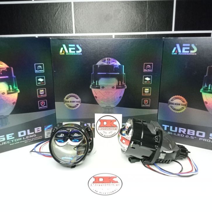 Lampu Headlamp Projector Biled AES Turbo SE Dobel Low Beam / DLB 2,5 Inchi New Blue Lens Motor Mobil