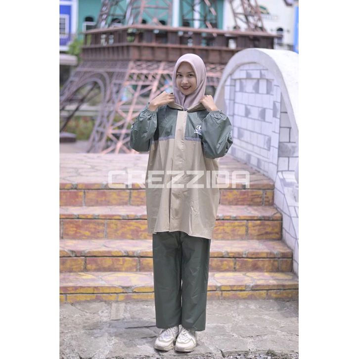 jas hujan pria Jas Hujan Crezzida Pria Wanita Mantel Ujan Setelan Baju Dan Celana Dewasa Raincoat Kombinasi Bahan PVC