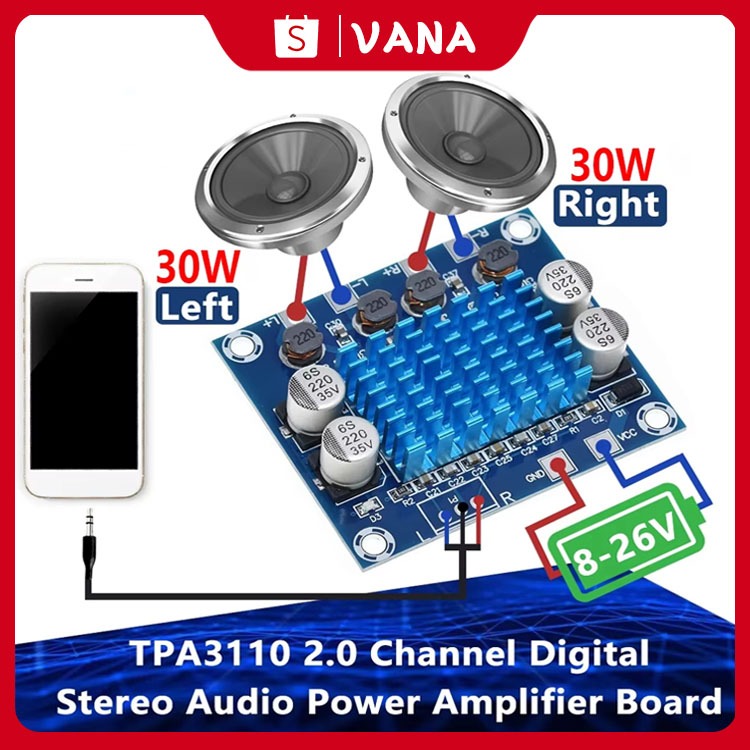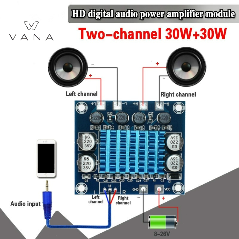 TPA3110 XHA232 30W+30W 20 CHANNEL DIGITAL STEREO AUDIO POWER AMPLIFIER BOARD DC 826V 3A