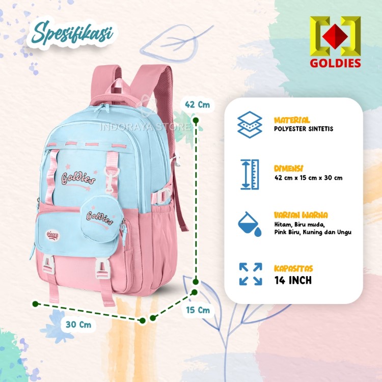 TAS SEKOLAH ANAK PEREMPUAN SD RANSEL ANAK GOLDIES TAS SEKOLAH ANAK PEREMPUAN OXFORD CLOTH MODEL KOREA TEBAL 6-15 TAHUN