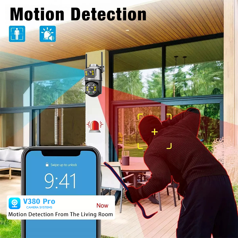 V380 PRO OUTDOOR DUAL LENS CCTV HD 8MP WIFI JARAK JAUH TWO WAY AUDIO 360 PTZ FULL VIEW IP KAMERA