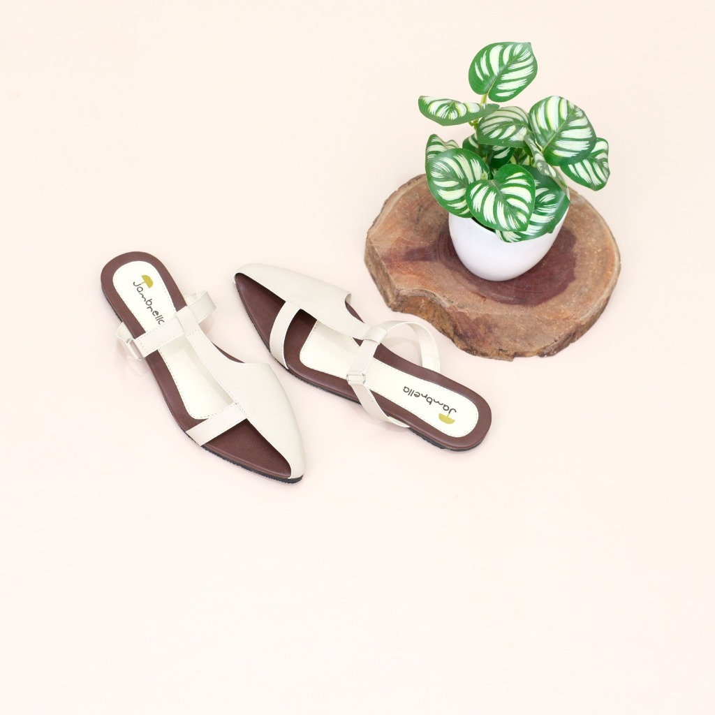 Jambrella YUHA CREAM Sandal Wanita flat Harian Elegan trendy