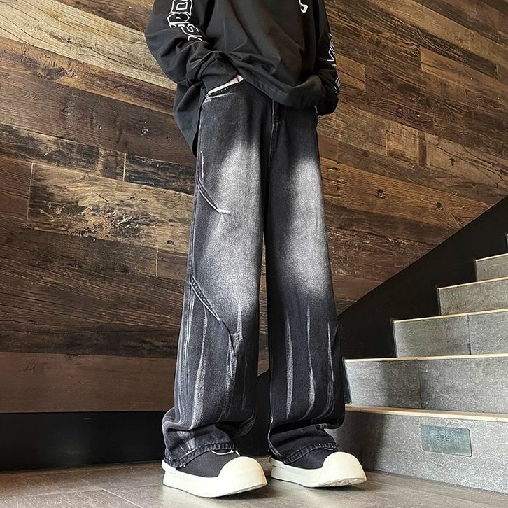 Celana Jeans Gombrong Jeans Abu Hitam Pria Wanita Unisex Kulot Jumbo Baggy Denim Selvedge Loose Pants