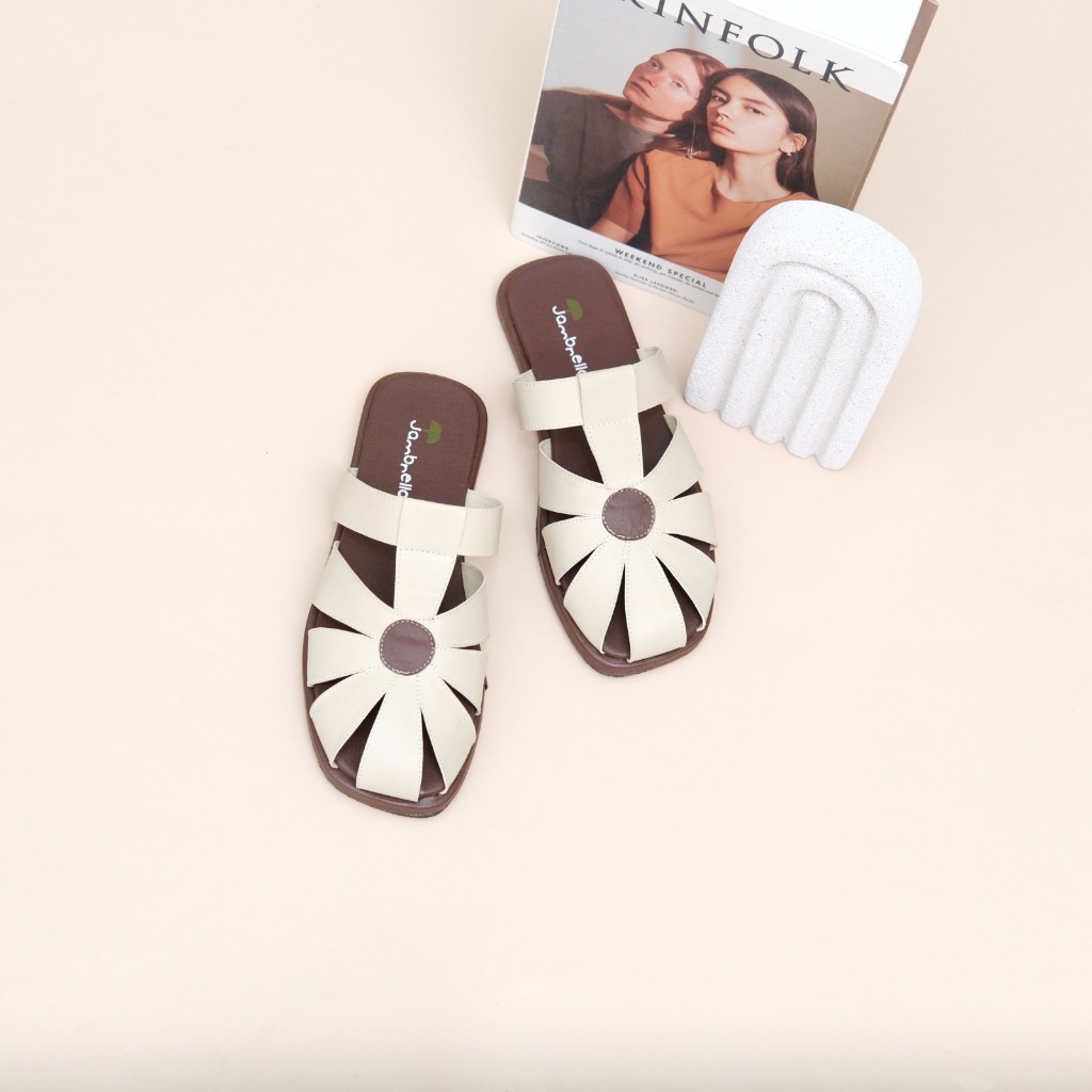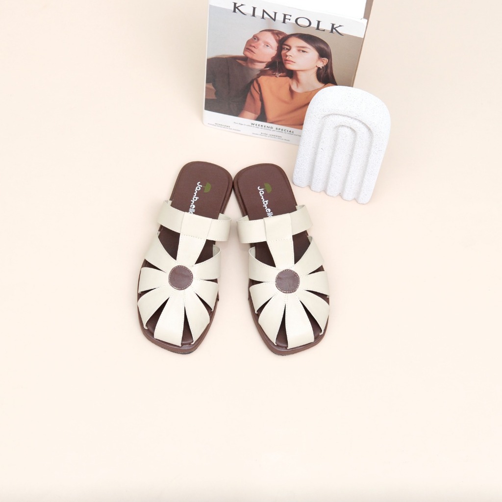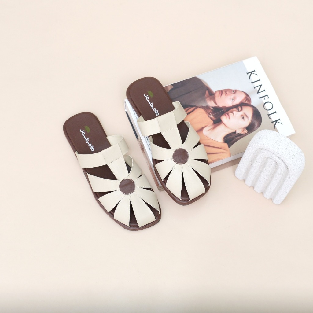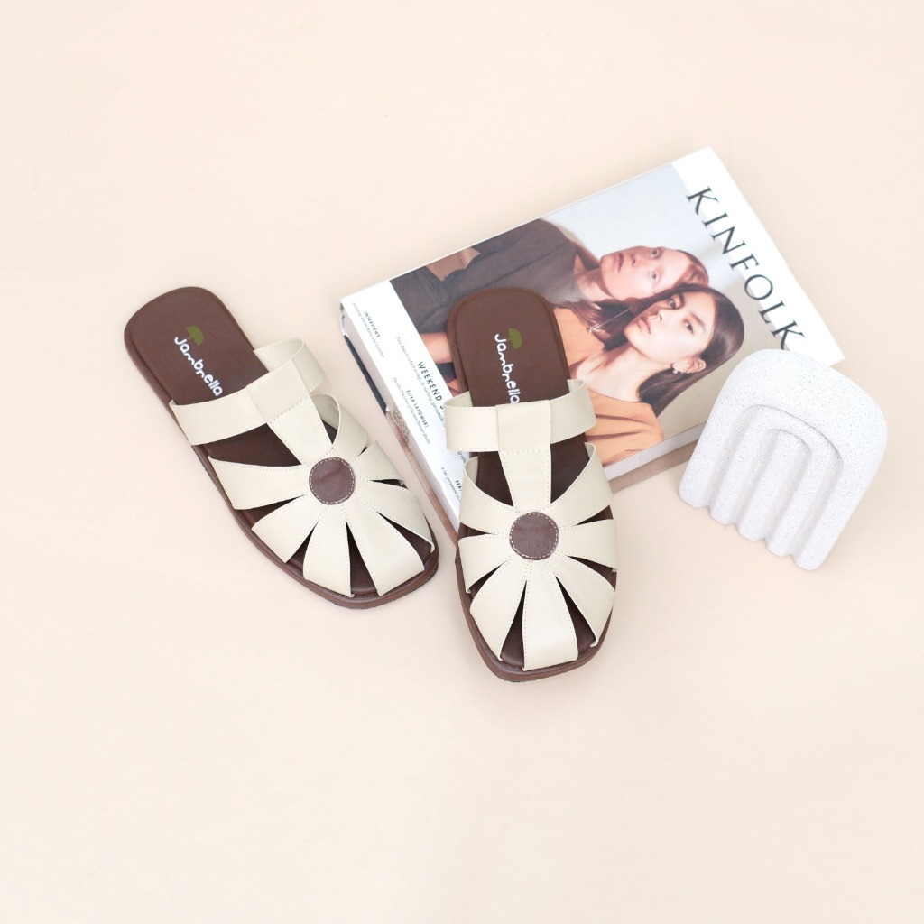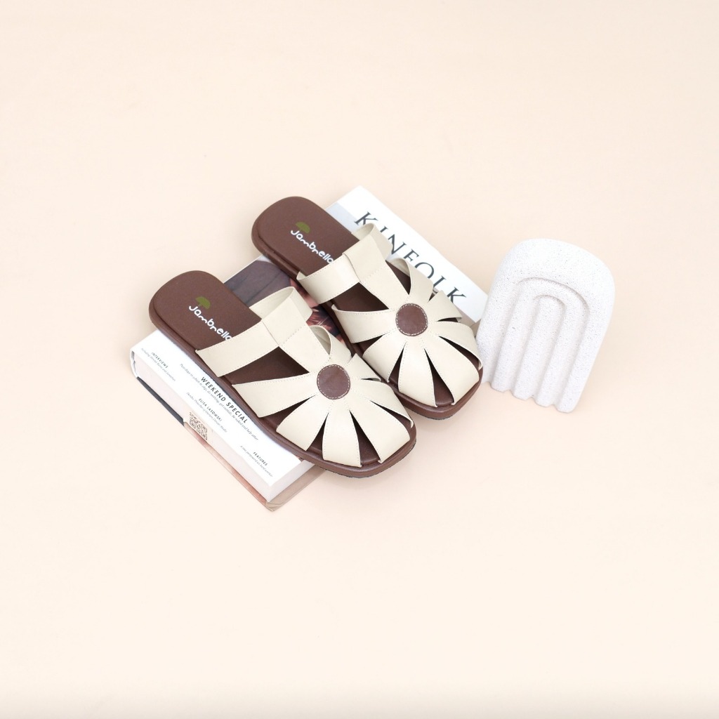 Jambrella MEYLA CREAM sandal flat wanita sandal slop wanita trendy