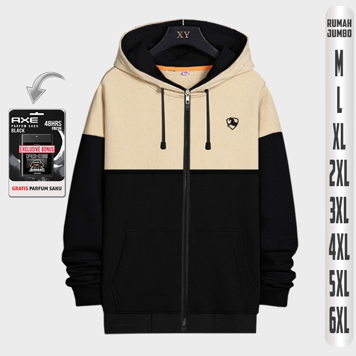 Jaket Pria Black Cream Oversize 2XL 3XL 4XL 5XL 6XL Jaket Switer Pria Big Size