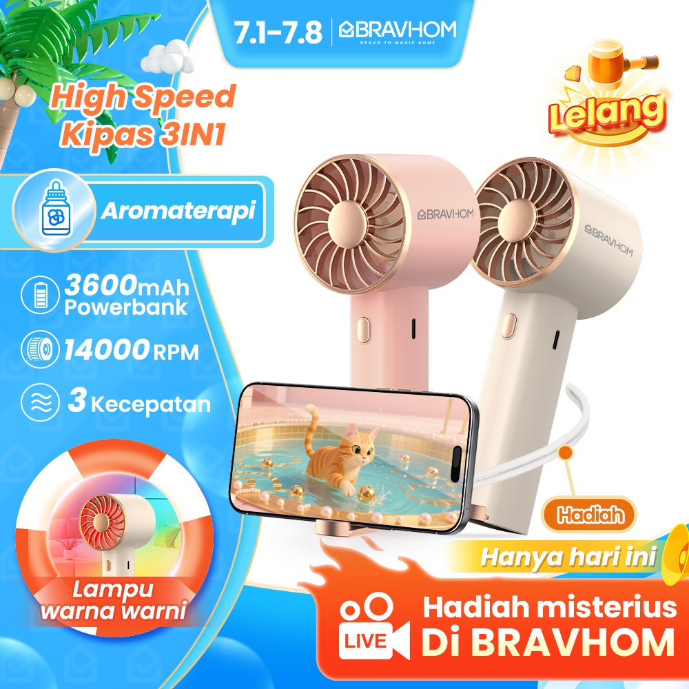 BRAVHOM KIPAS MINI TURBO 3IN1 POWERBANK 3600MAH AROMATERAPI KIPAS ANGIN PORTABLE 3 SPEEDS BLFN16