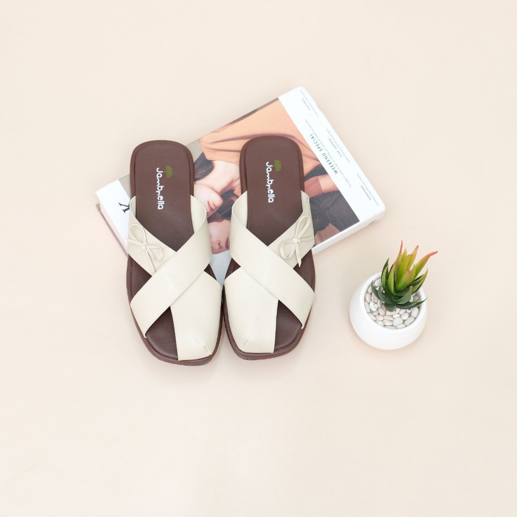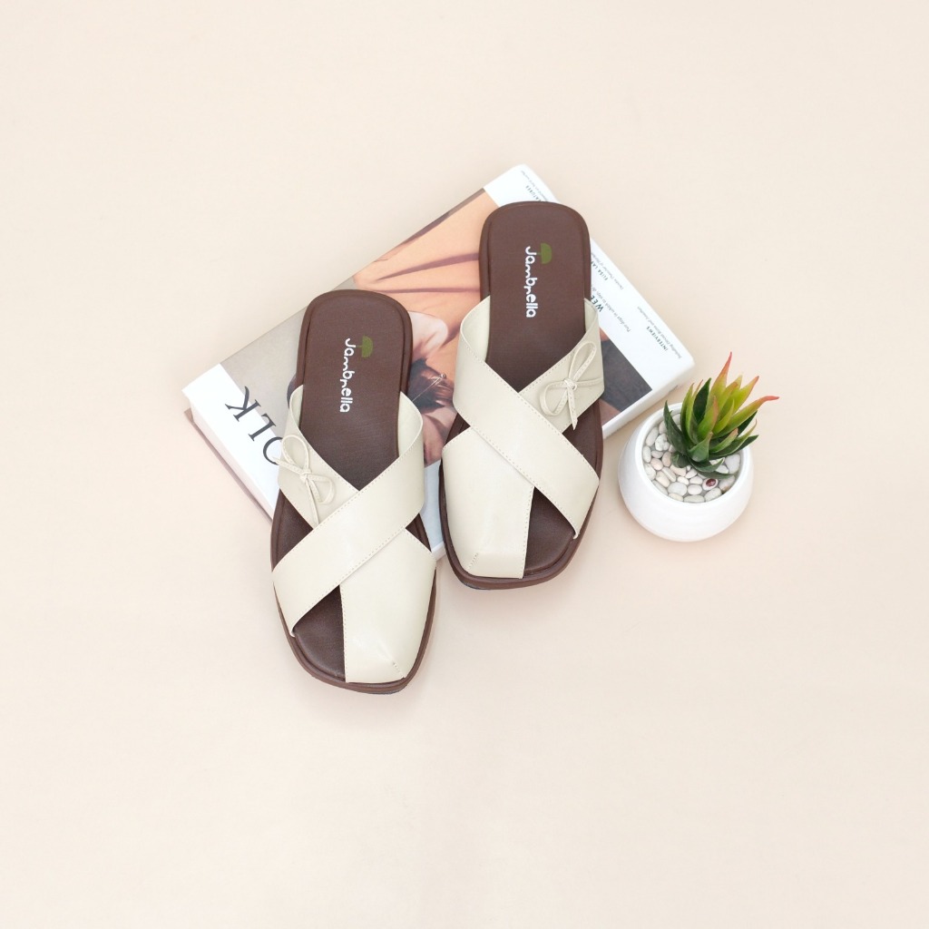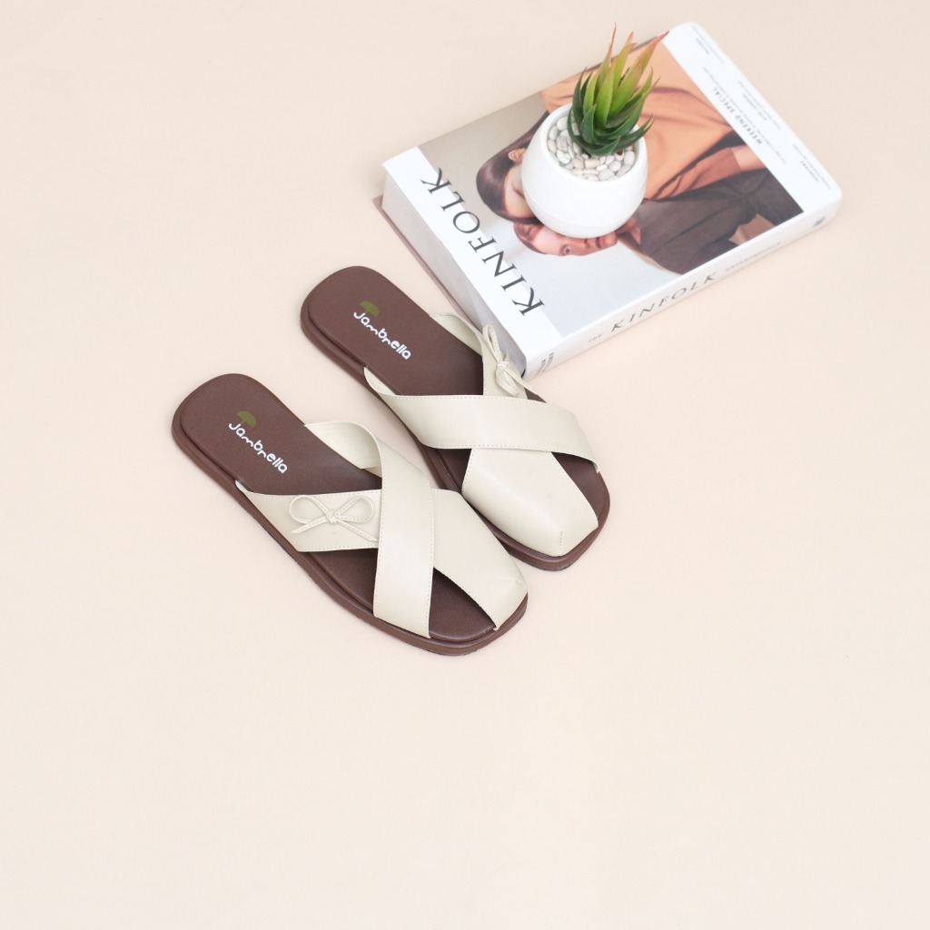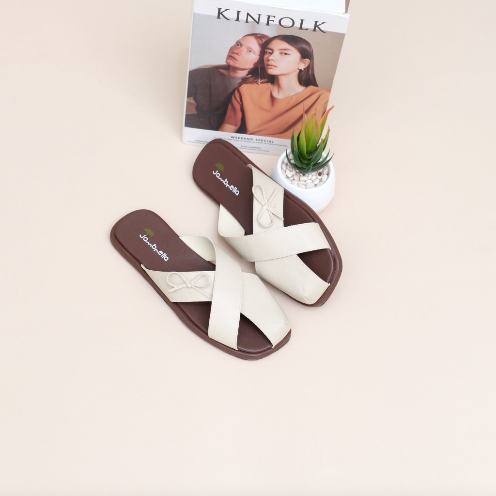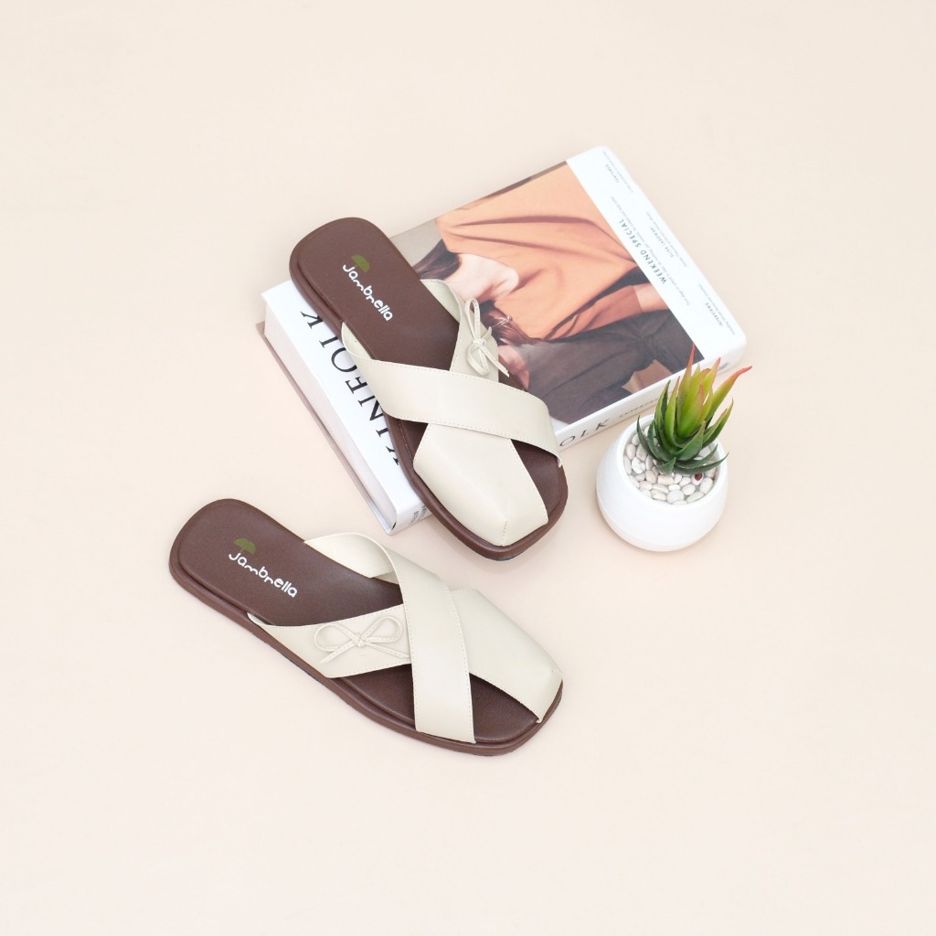 Jambrella HAZEL CREAM sandal flat wanita sandal slop cewek trendy