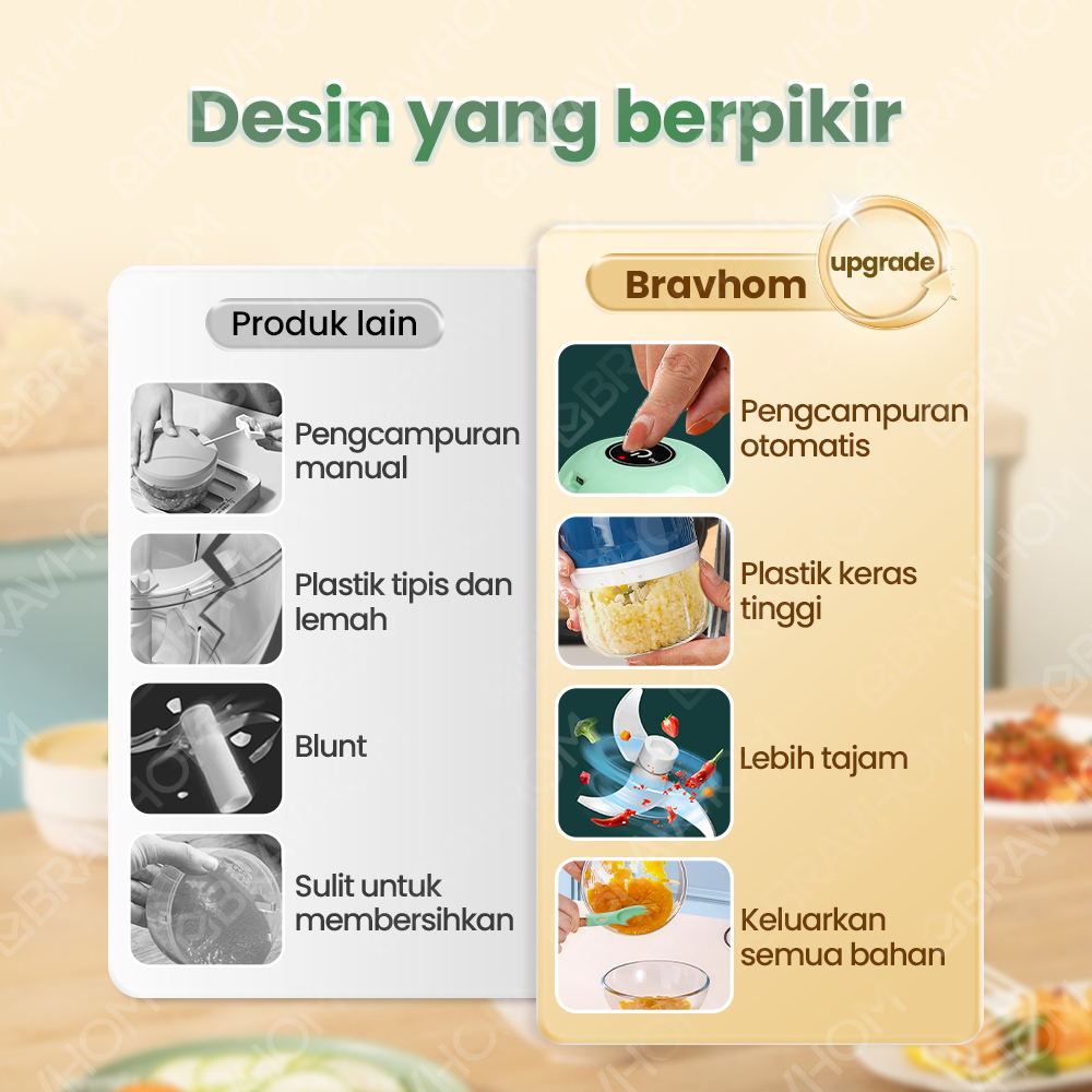BRAVHOM BLENDER BUMBU MINI CHOPPER PORTABLE COPER BUMBU HALUS BASAH DAPUR BLENDER MPASI BAYI BLCP01