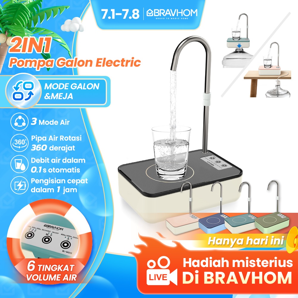 BRAVHOM POMPA AIR GALON ELEKTRIK 2IN1 DISPENSER AIR PANAS DINGIN RUMAH DAN LUAR RUANGAN BLWD13