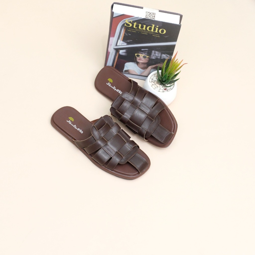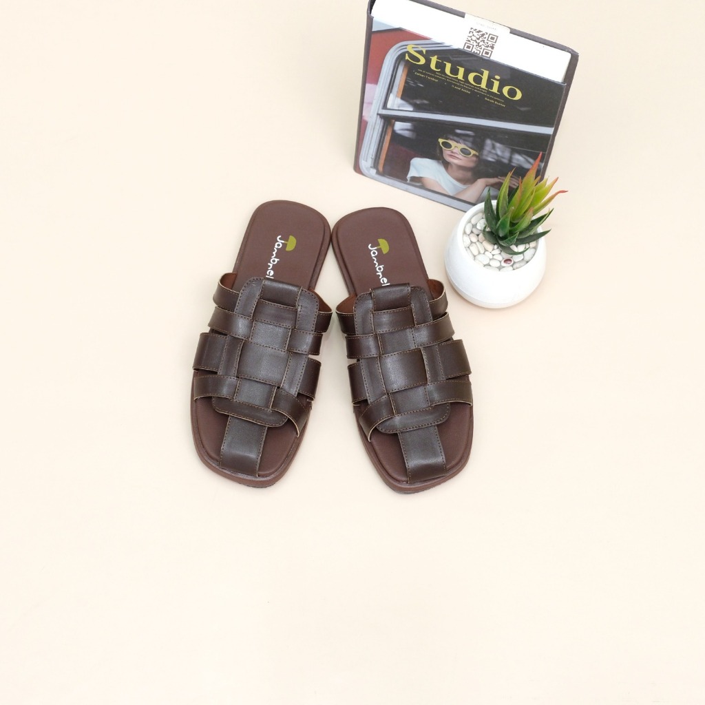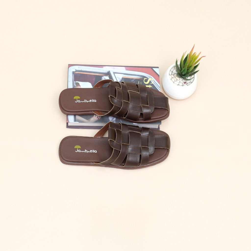 Jambrella SOWON DARK BROWN sandal flat wanita sandal slop wanita trendy