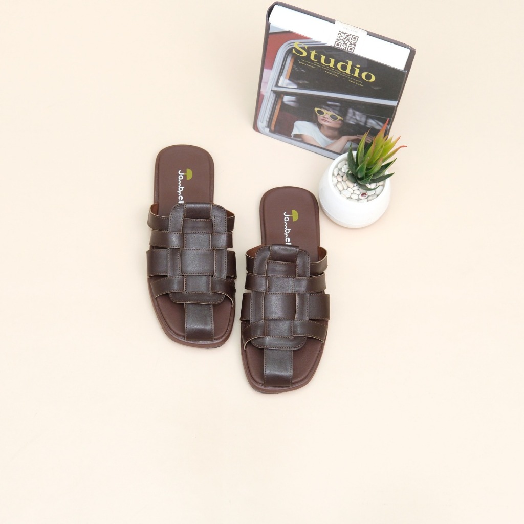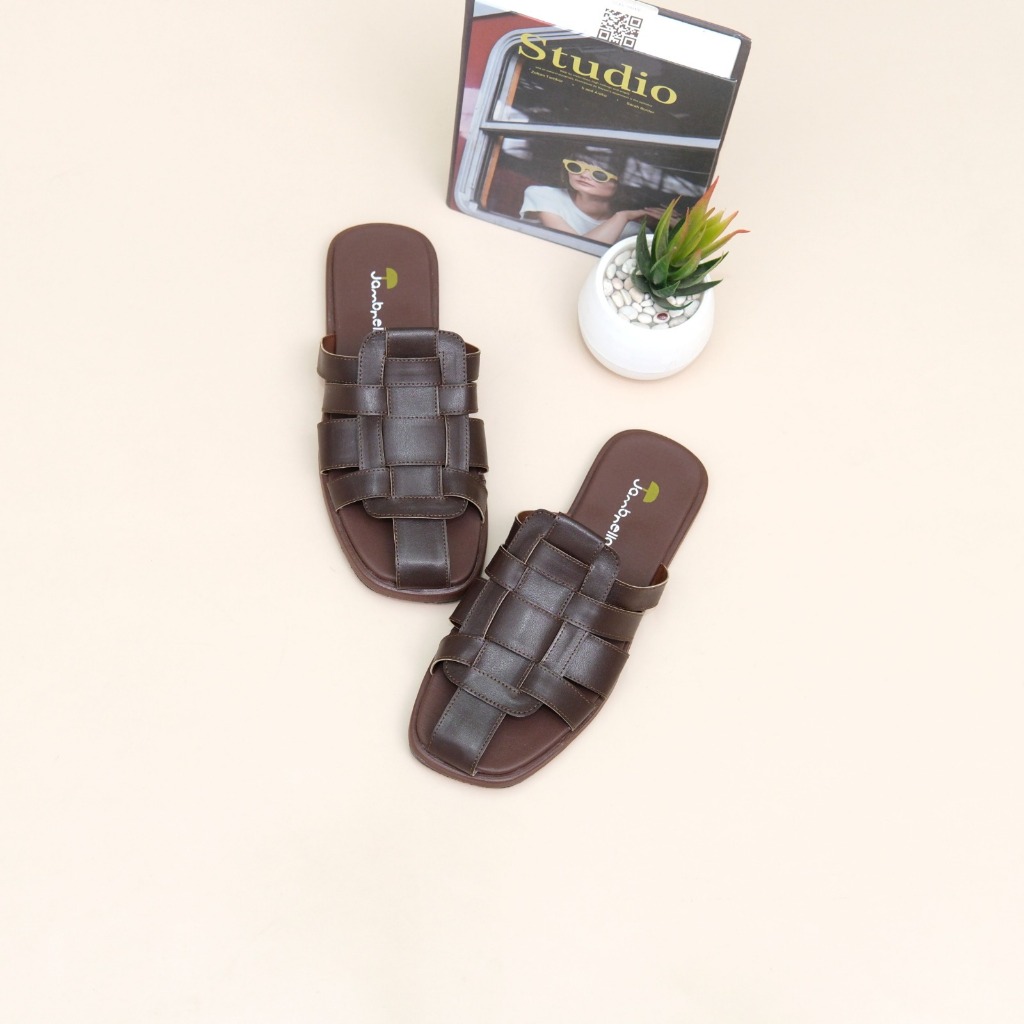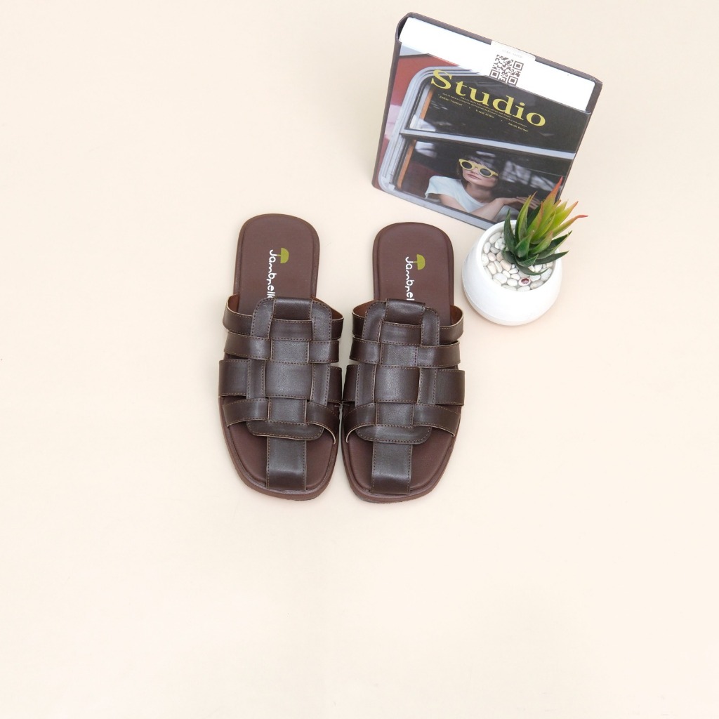 Jambrella SOWON DARK BROWN sandal flat wanita sandal slop wanita trendy