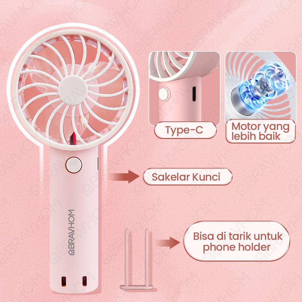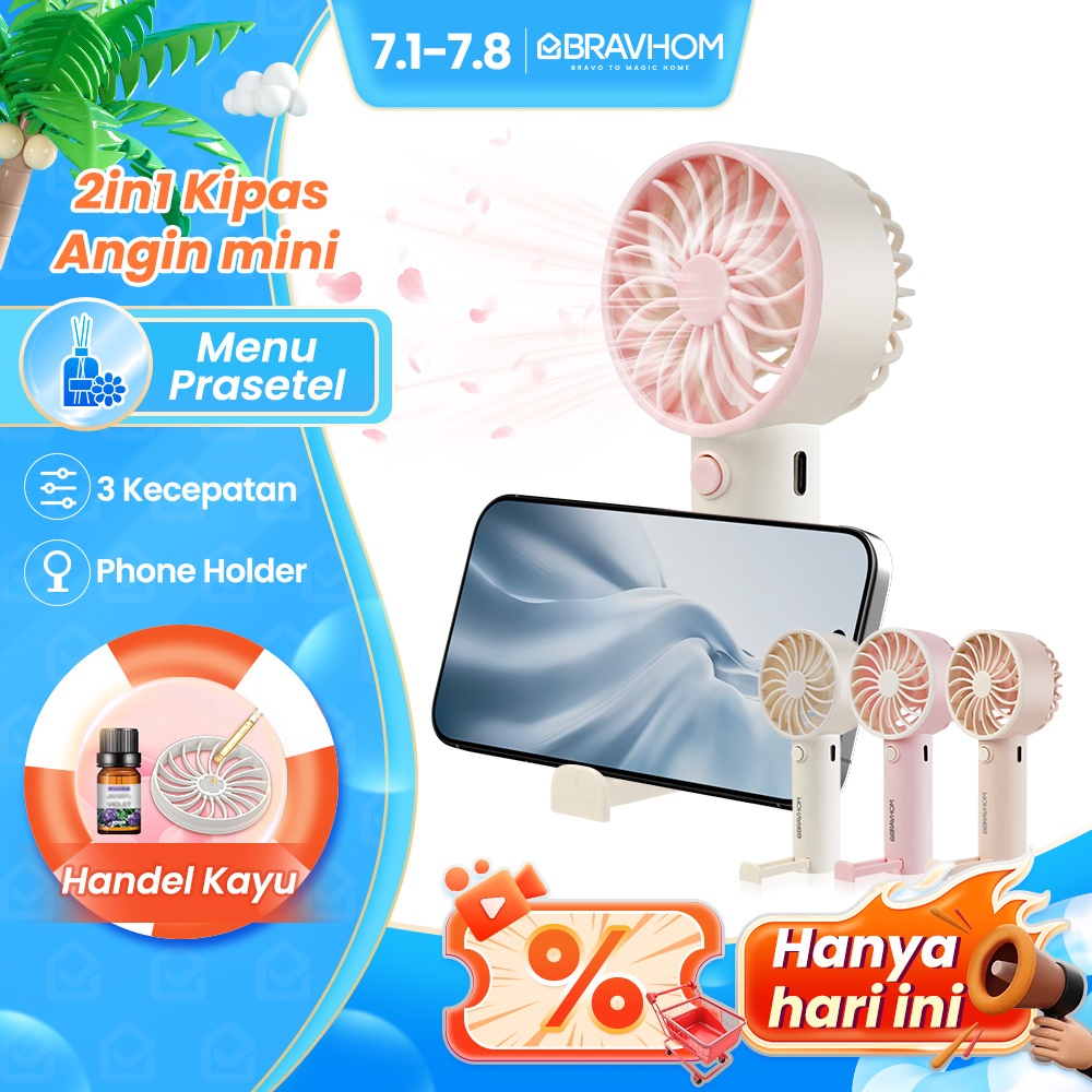 BRAVHOM KIPAS ANGIN MINI PORTABLE 2IN1 AROMATERAPI 3 KECEPATAN PHONE HOLDER KIPAS MINI BLFN18