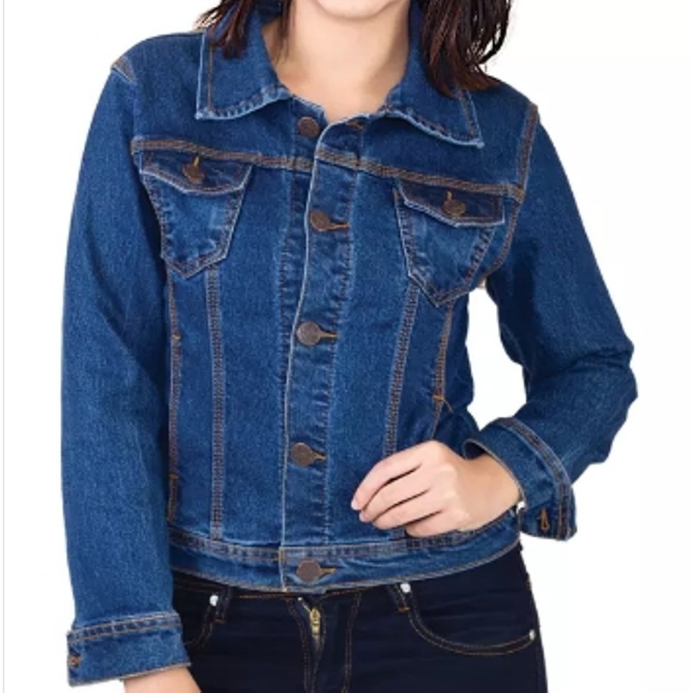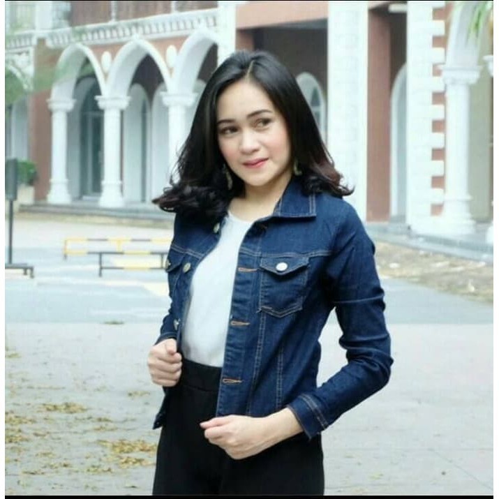 JAKET JEANS DENIM WANITA CROPING SLIMFIT CEWE FASHION TERBARU