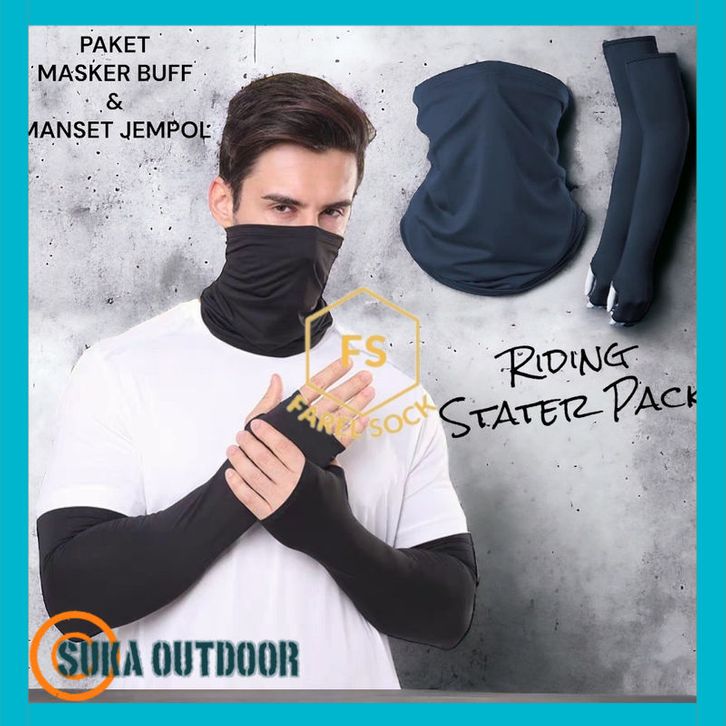 Paket Riding dan Hiking Starter Pack Masker Baff Manset Jempol Mask Buff handsock bundle