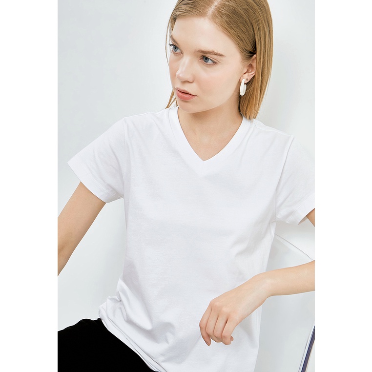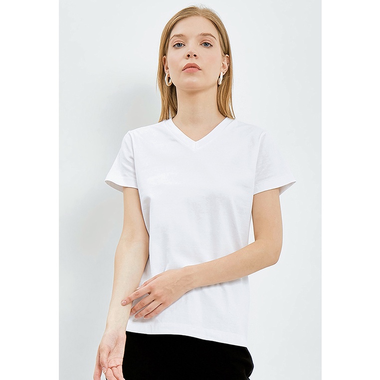 Executive Basic V-Neck Cotton T-Shirt Off White