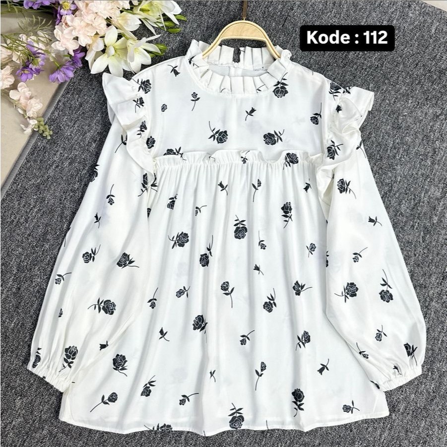 BLOUSE Atasan Wanita Lengan Panjang Motif Flowers Kekinian Bahan ORIGINAL QUALITY PREMIUM