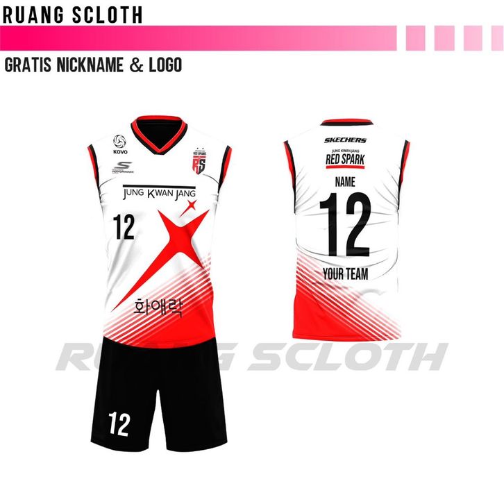 Jersey Voli Pria Red Spark Terbaru Gratis Pasang Nama dan Nomor Punggung