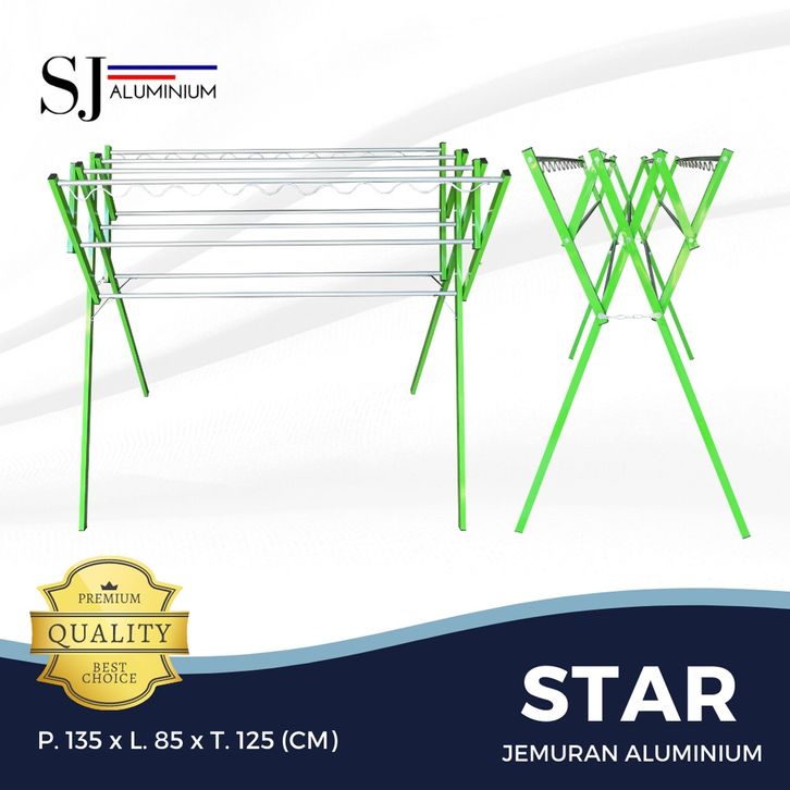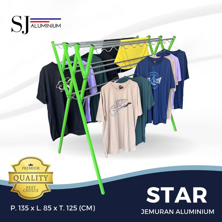 Jemuran Baju / Jemuran Rak Handuk / Jemuran Pakaian Aluminium Rak Jemur Hanger Lipat Hijau