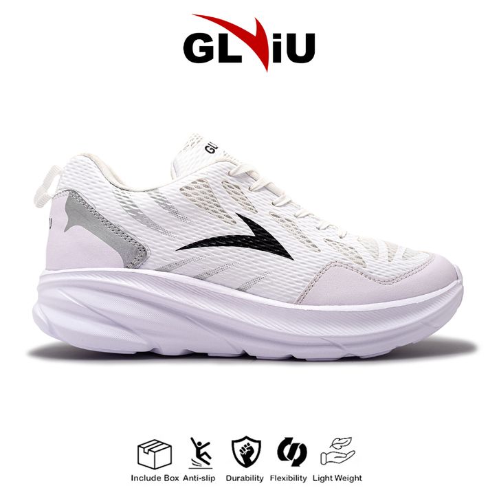 Sepatu Running Pria Wanita GLVIU Original Sneakers Olahraga Lari Jogging Casual Outdoor Warna White Grey