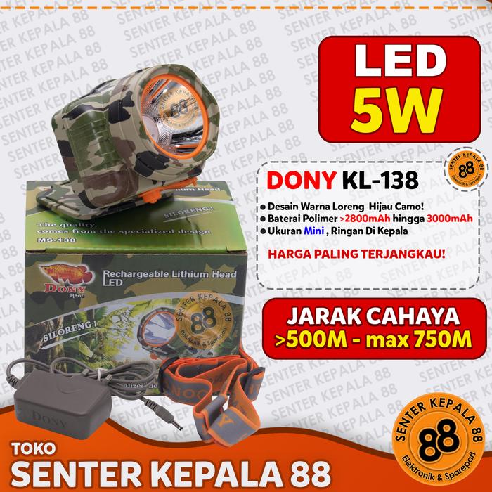 DONY Senter kepala Cas DONY KL 138 Si Loreng 5 WATT 5W QLED LED MURAH TERANG GUNUNG MURAH KECIL MINI