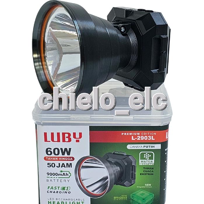Senter Kepala Luby L-2903L L2903K 60W Baterai Lithium Kapasitas 9.000mAh Tahan Air dengan Cahaya