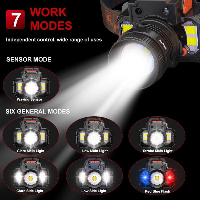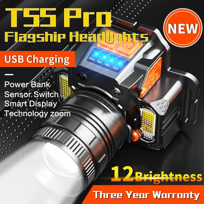 Lampu Senter Kepala Led F-T51 Multifungsi Headlamp COB Zoom Sorot Super Terang