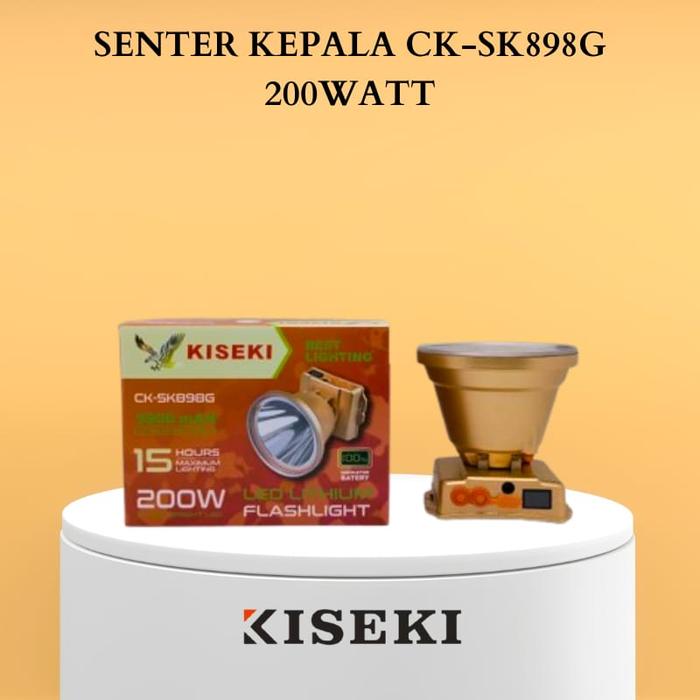 SENTER KEPALA LED 200W KISEKI CK-SK898G - BATERAI 00mAh - CAHAYA TERANG - JARAK JAUH - TAHAN LAMA -