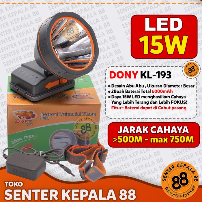 DONY Senter Kepala Lampu Kepala LED Bisa Ganti Copot Baterai Batre KL 193 SILAUMEN Silau men LED