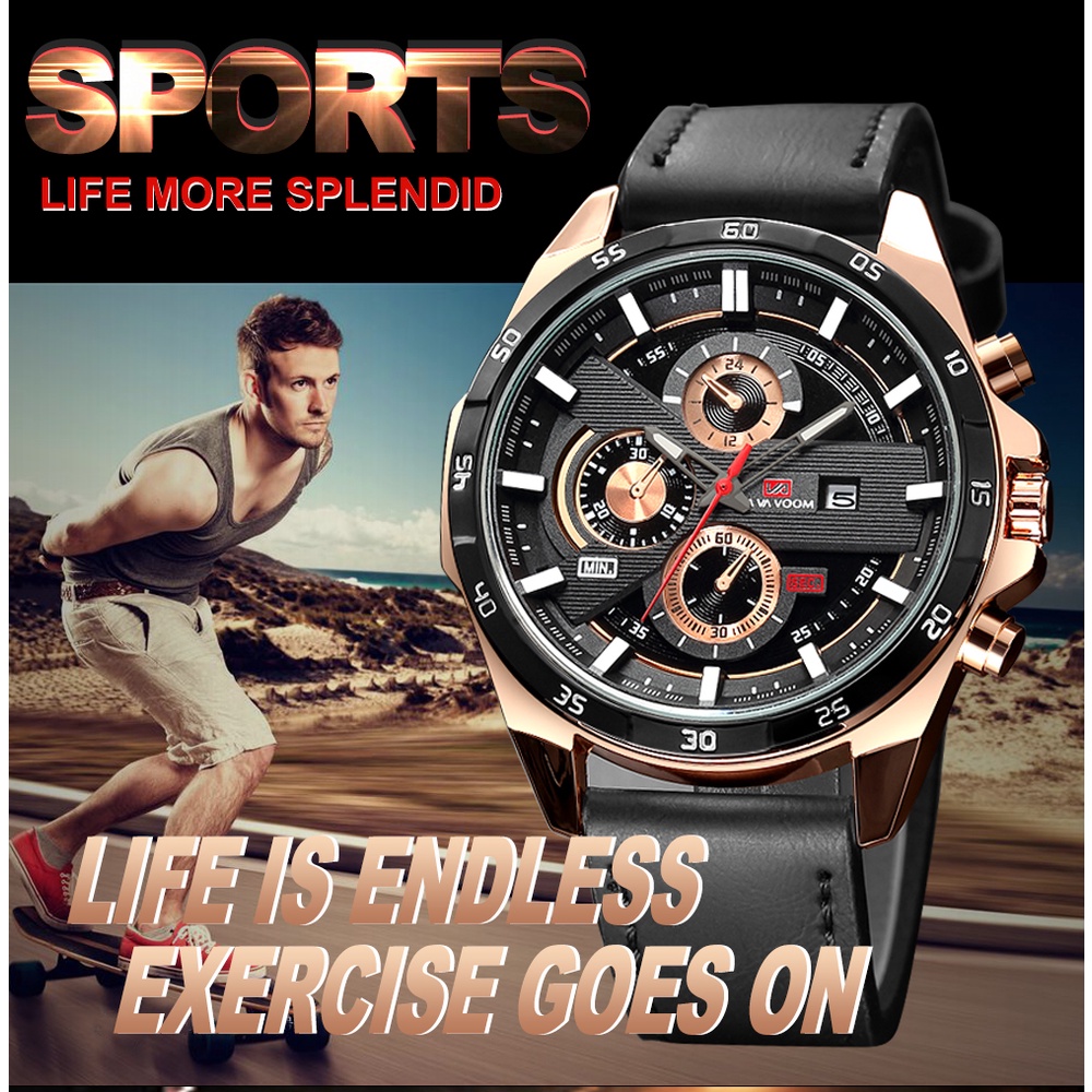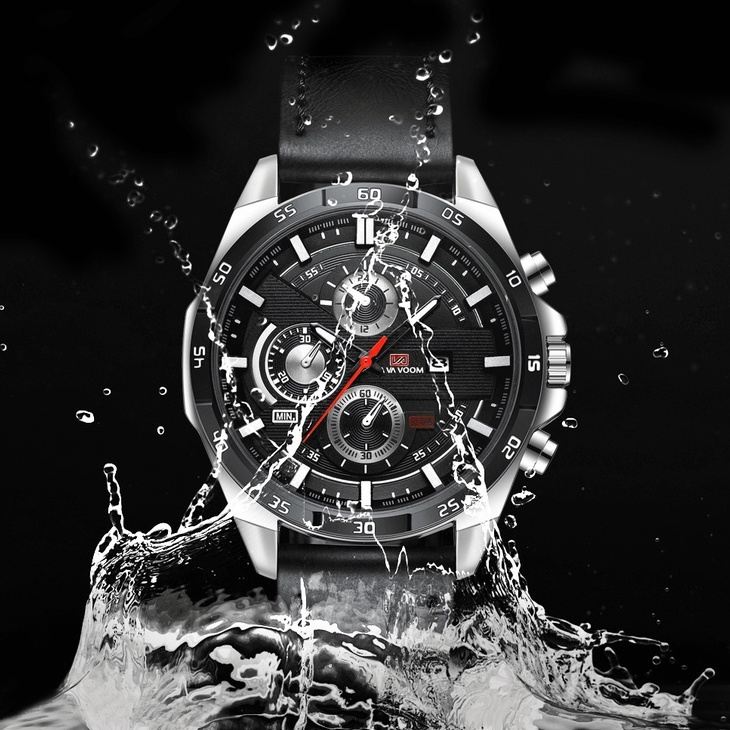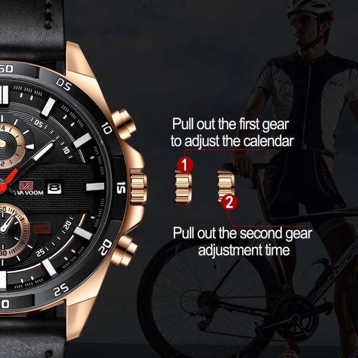 Jam Tangan Pria VA VA VOOM 216 - Kulit & Stainless Steel, Analog Quartz Tahan Air