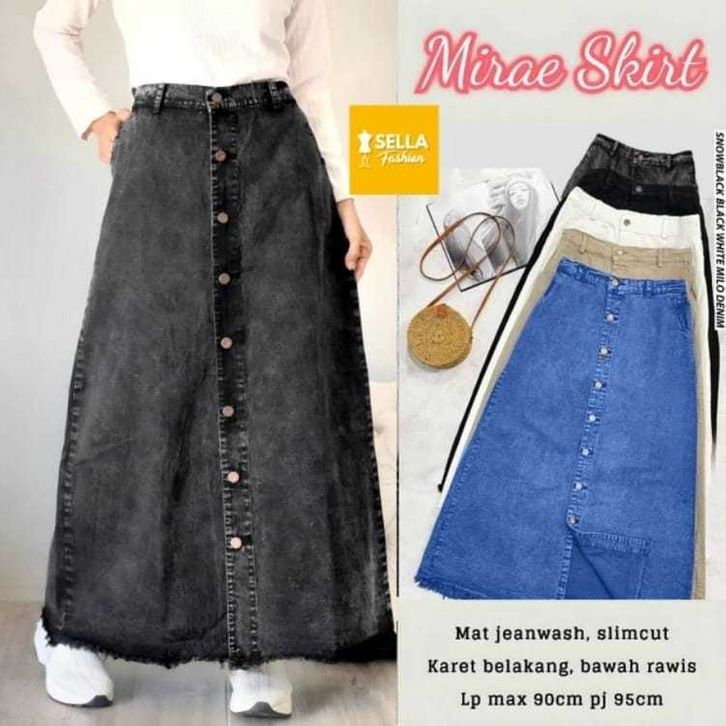Rok Panjang Jeans Tebal Depan Kancing Rawis Murah Amanah Jeans Rok Wanita Outfit 2025 Hijab Friendly