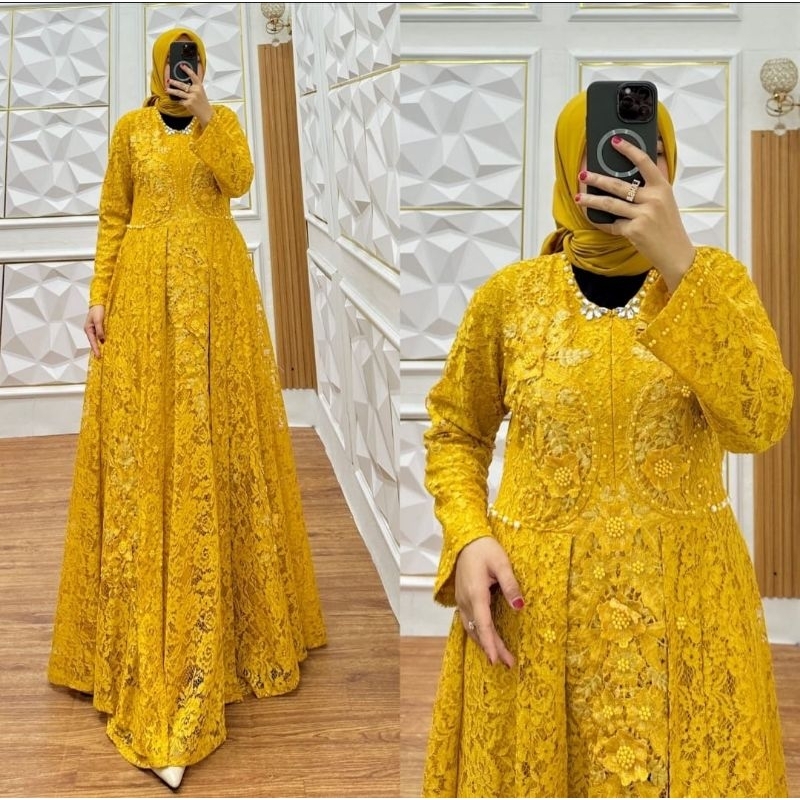 New Collection Gamis brokat bordir Payetfull furing/Gamis pesta mewah