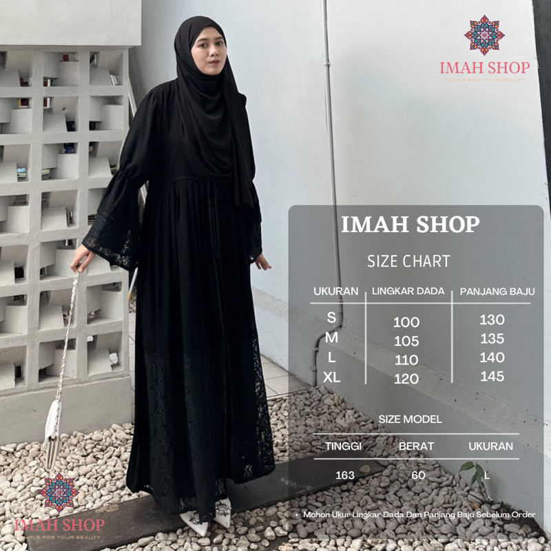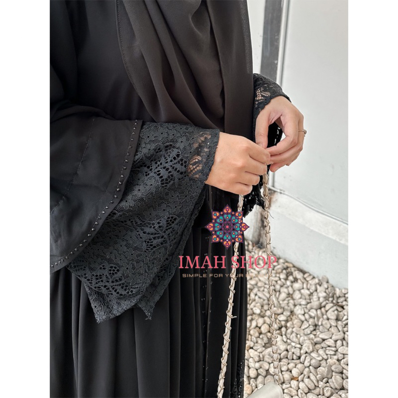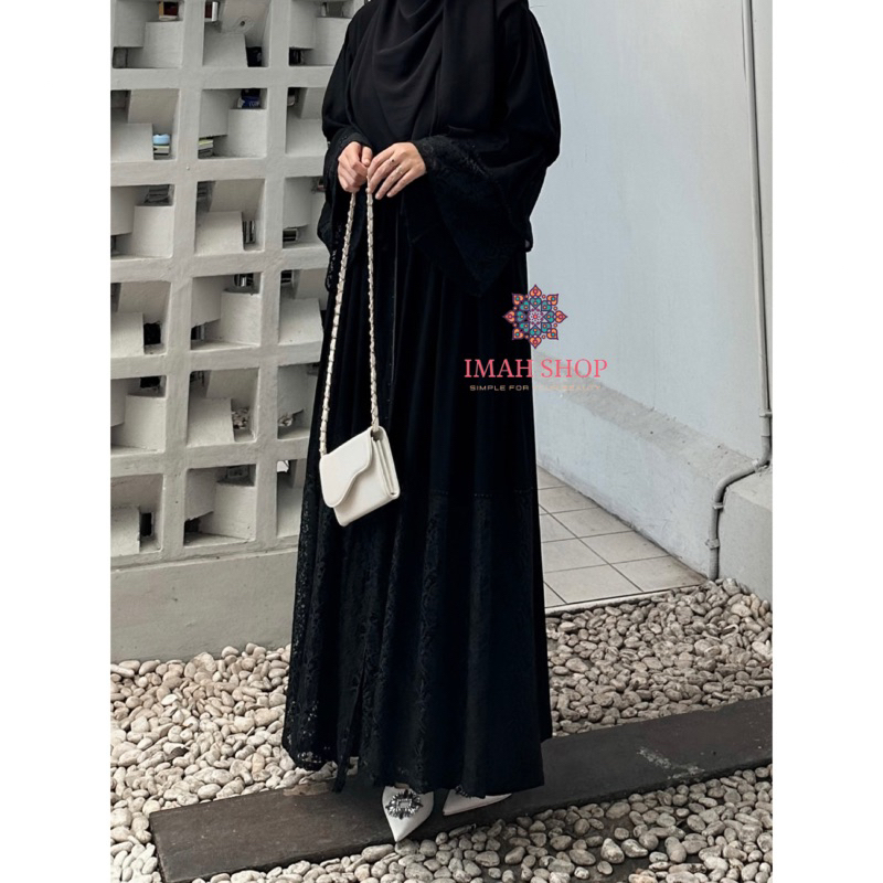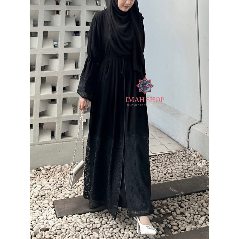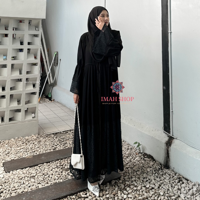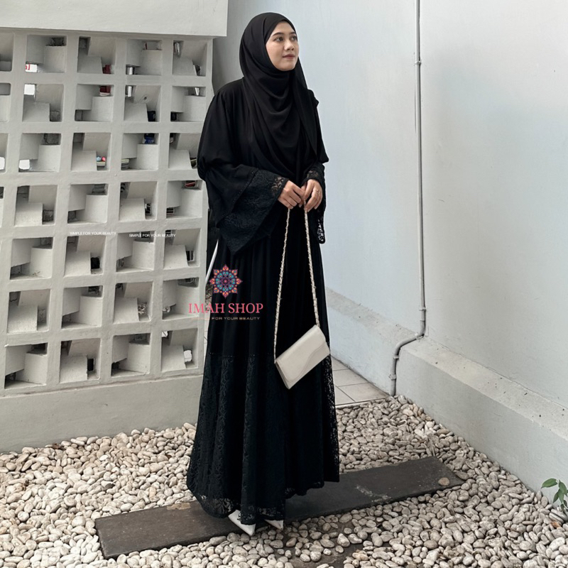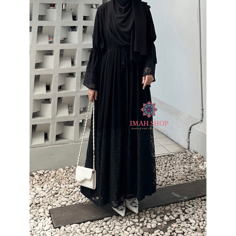 Abaya Gamis Hitam Dress Maxi Arab Saudi Kombinasi Brukat By Imah Shop 926