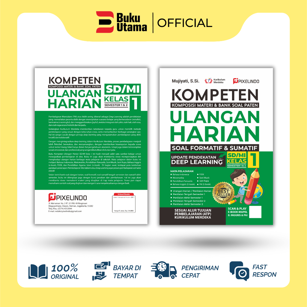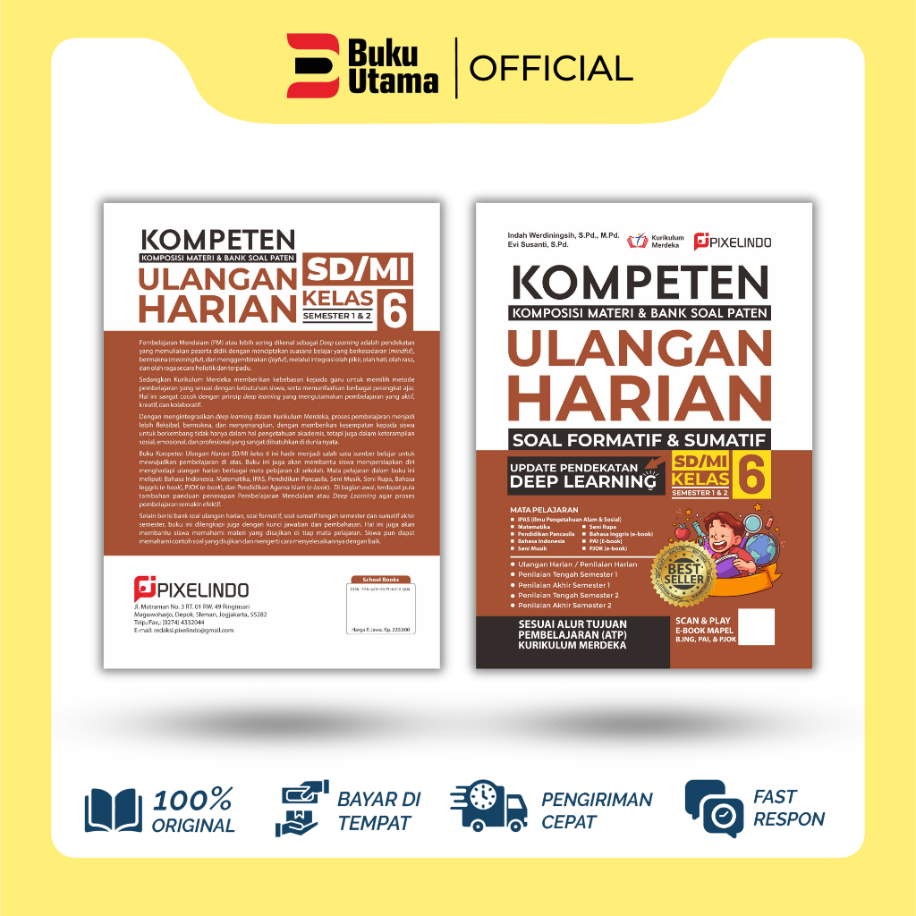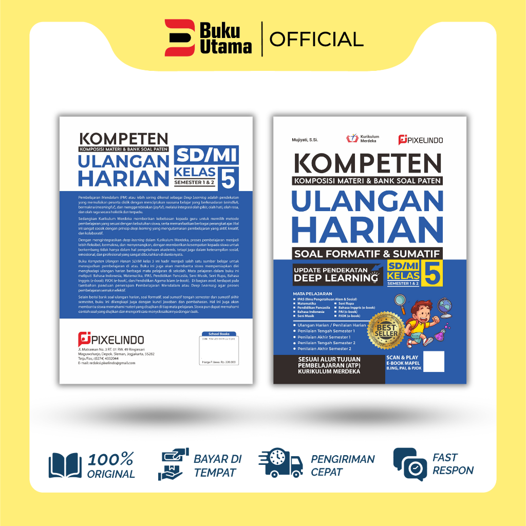 BUKU KOMPETEN ULANGAN HARIAN SD KELAS 1, 2, 3, 4, 5, 6 KURIKULUM MERDEKA UPDATE DEEP LEARNING