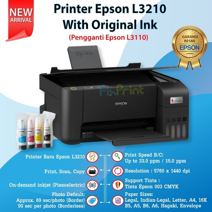 Printer Epson EcoTank L3210 All-in-One (Print - Scan - Copy) New, Pengganti L3110 Multifungsi Photo Warna