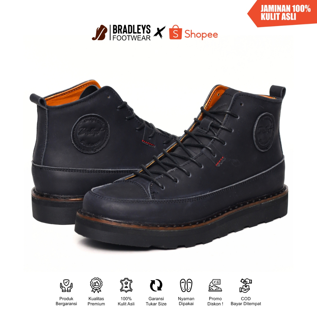 Bradleys Arthur Full Black - Sepatu Kulit Boots Pria Bahan Kulit Asli