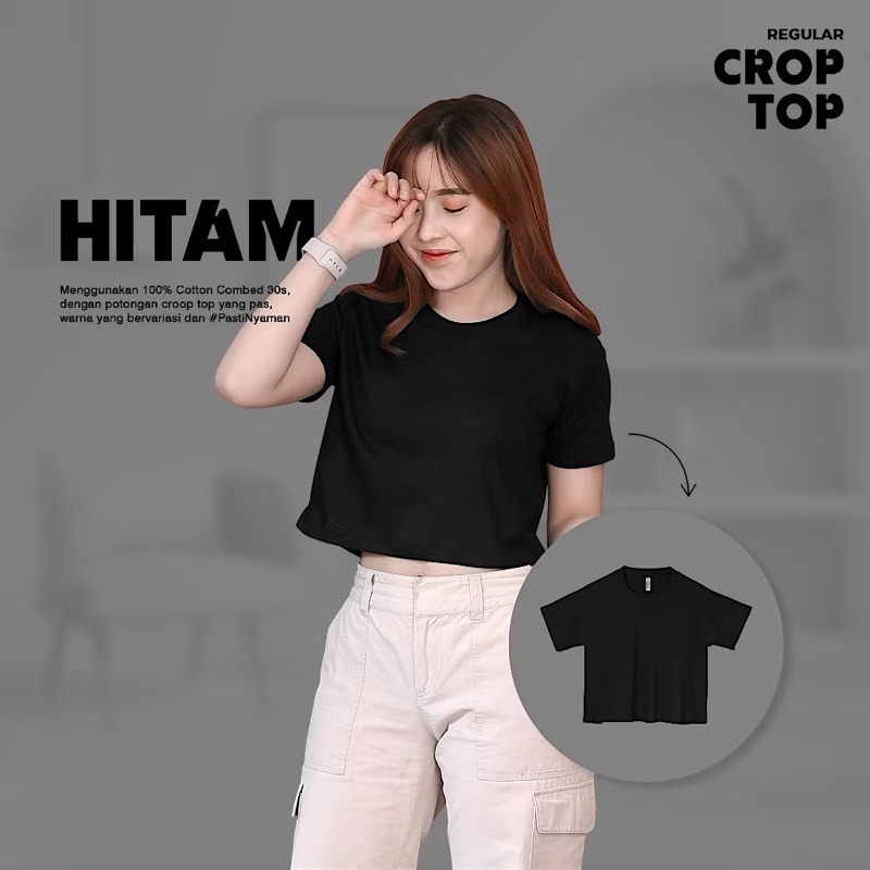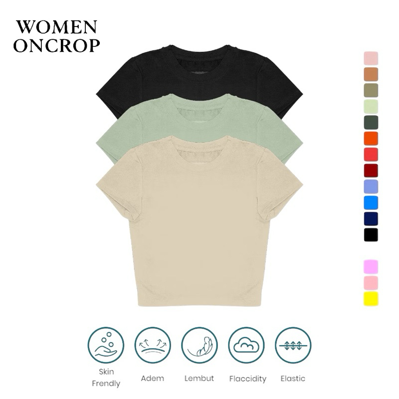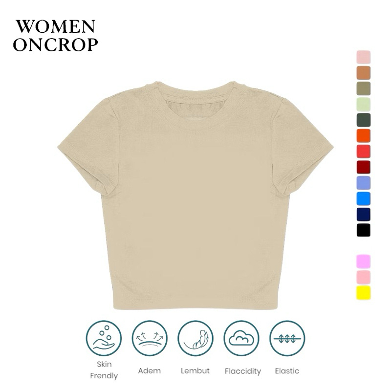 BASIC CROP SLIM FIT LENGAN PENDEK KAOS CROP TEE Crop Top Baju Wanita Crop Top Korea Crop Tee