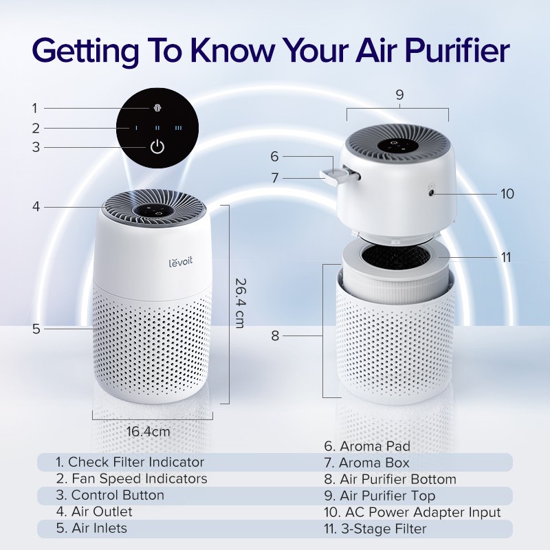 Levoit Core Mini Desktop Air Purifier with Fragrance Aroma Diffuser