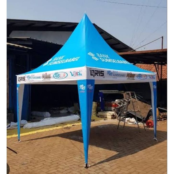 Tenda kerucut ukuran 3x3 meter rangka single atap printing bahan flexi korea