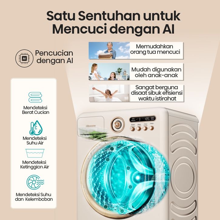 Hisense Mesin Cuci WD105R5 10.5 kg Roman Green - Ai wash - Inverter - Wifi - Child Lock - Wash and Dry